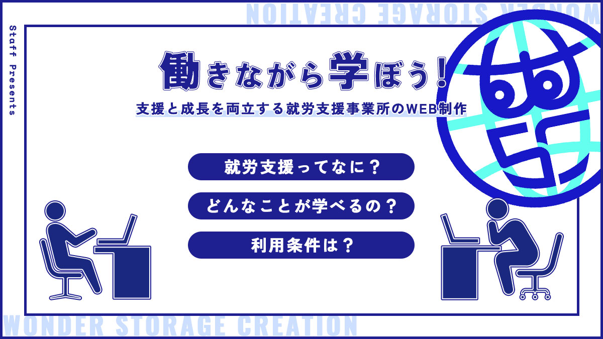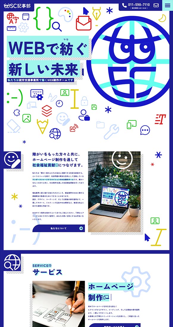 私たちは「障がい者の人たちが自立し活躍できる社会を創造する」というビジョンを掲げ、社会問題の解決を目的として活動しているワンダーストレージクリエイションのWEB制作チームです。障がいをもった方々と共に、WEB制作を通した社会福祉貢献を行っております。